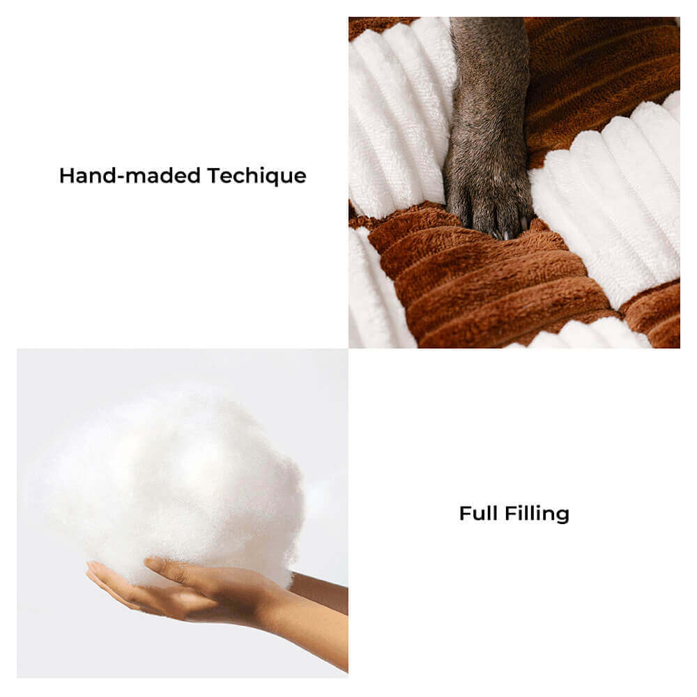 - Ultimate Comfort: The soft material squares and dense foam work together to make an snug space that improves your dogs sleep. With its backrest offering support and security this bed becomes a sanctuary for your pet to chill out and destress.